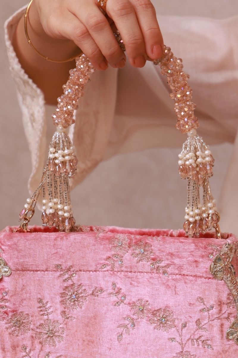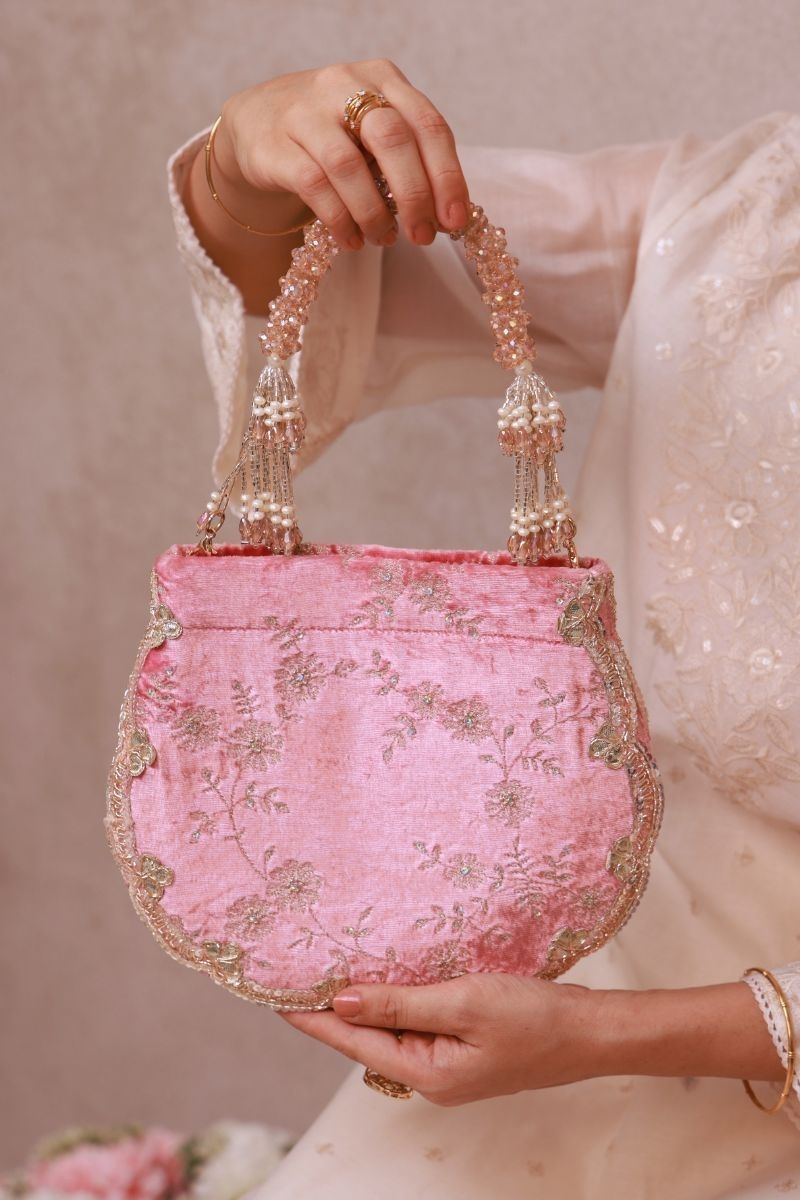 Graceful and feminine, the Suki Velvet Scallop Embroidered Purse is crafted in plush velvet with a soft sheen that adds richness to every ensemble. The scallop borders is highlighted with delicate embroidered and subtle bead detailing, creating an elegant balance of texture and shimmer. Finished with intricately embellished and handcrafted handle and tassels, this purse offers both charm and functionality