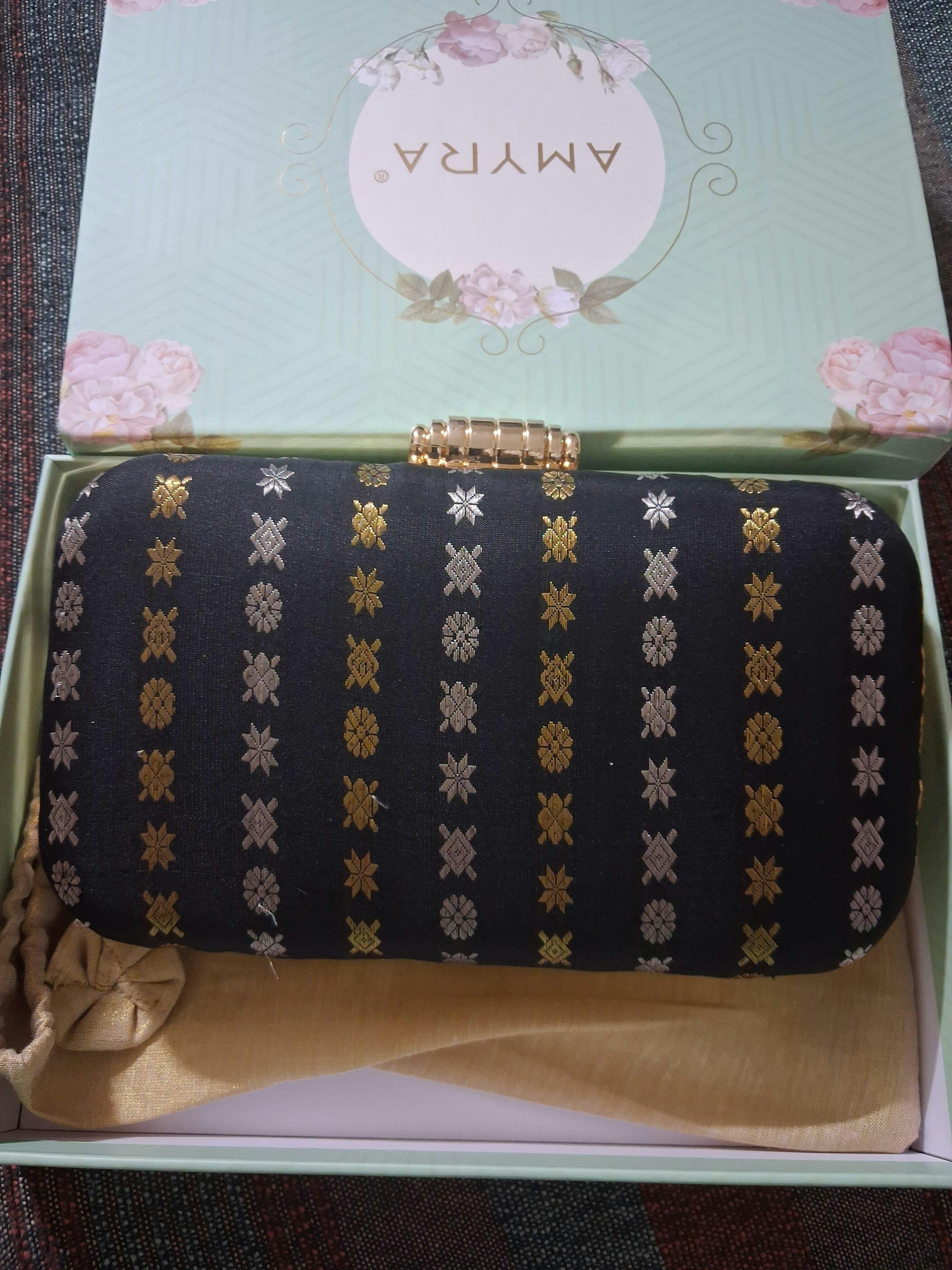 Thank you for this pretty luxurious clutch. Good quality & nice chain it has & it doesn’t get struck to my dress. I loved the packing & the thank you note from Amyra team.