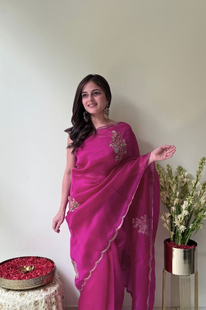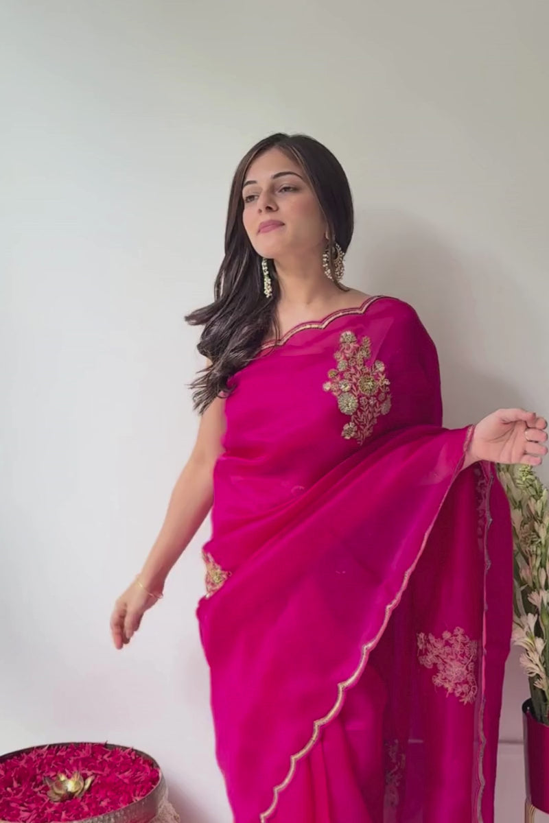 Material: Embroidered Pure Organza Silk Saree, Embroidered Raw Silk Blouse
